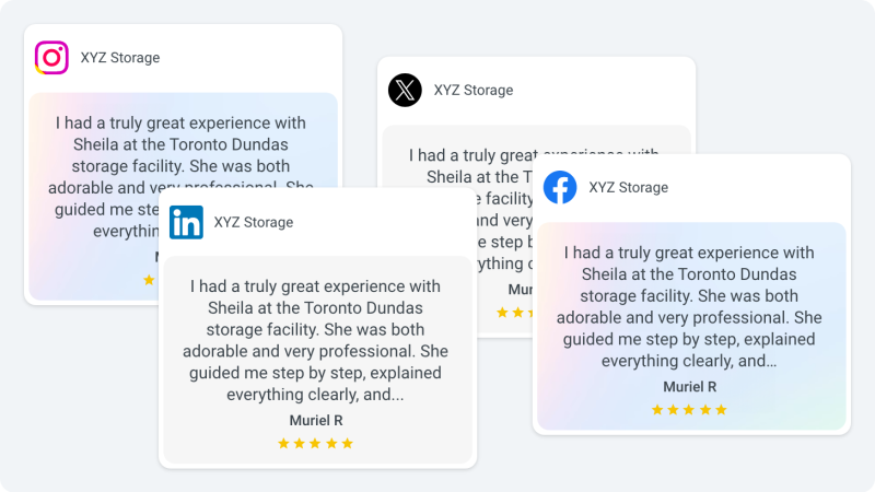 Share your customer reviews on your social media platforms with a customizable graphic.